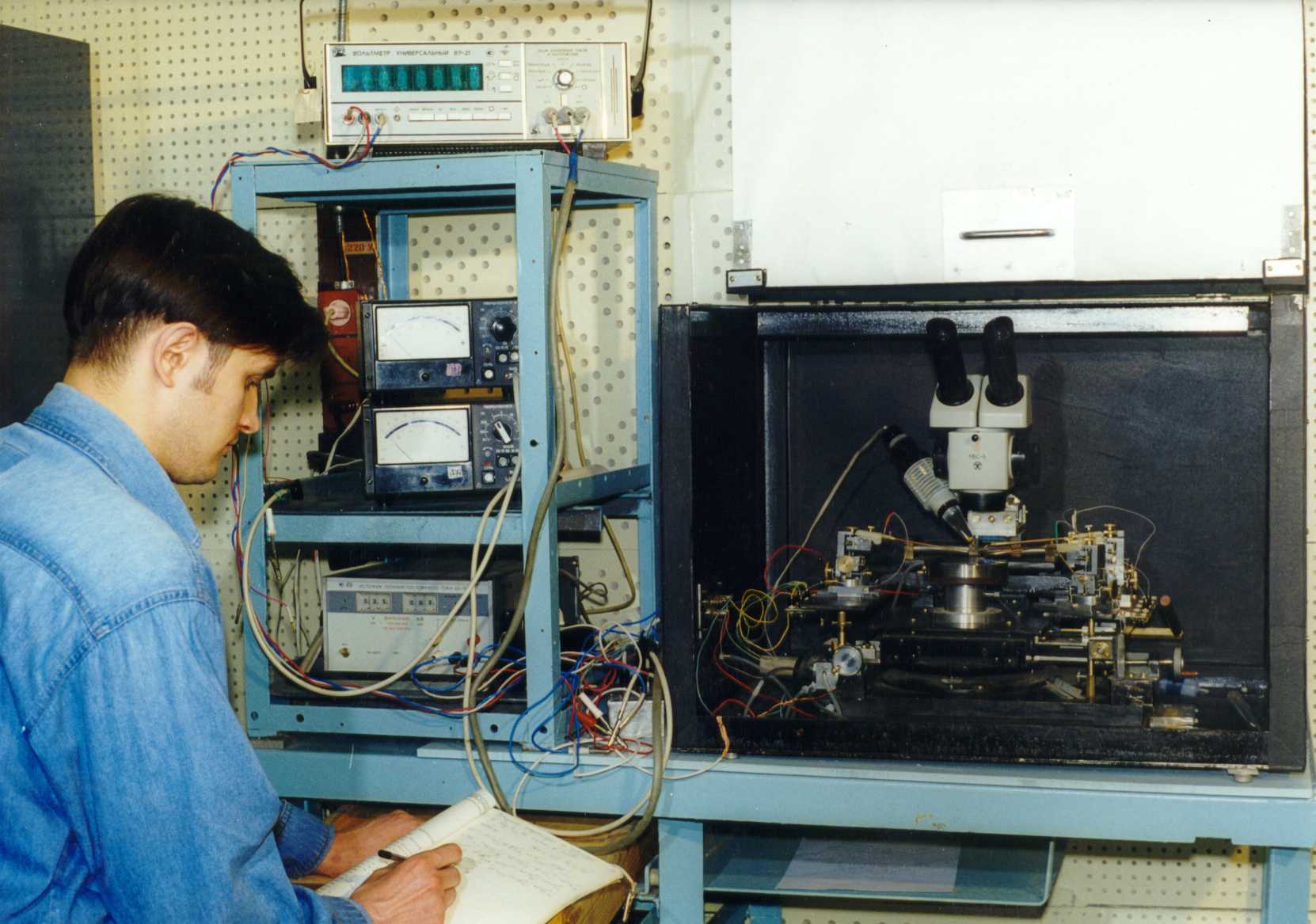 Probe station for microstrip detector characteristic measurments (154 KB). |
