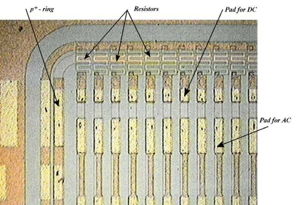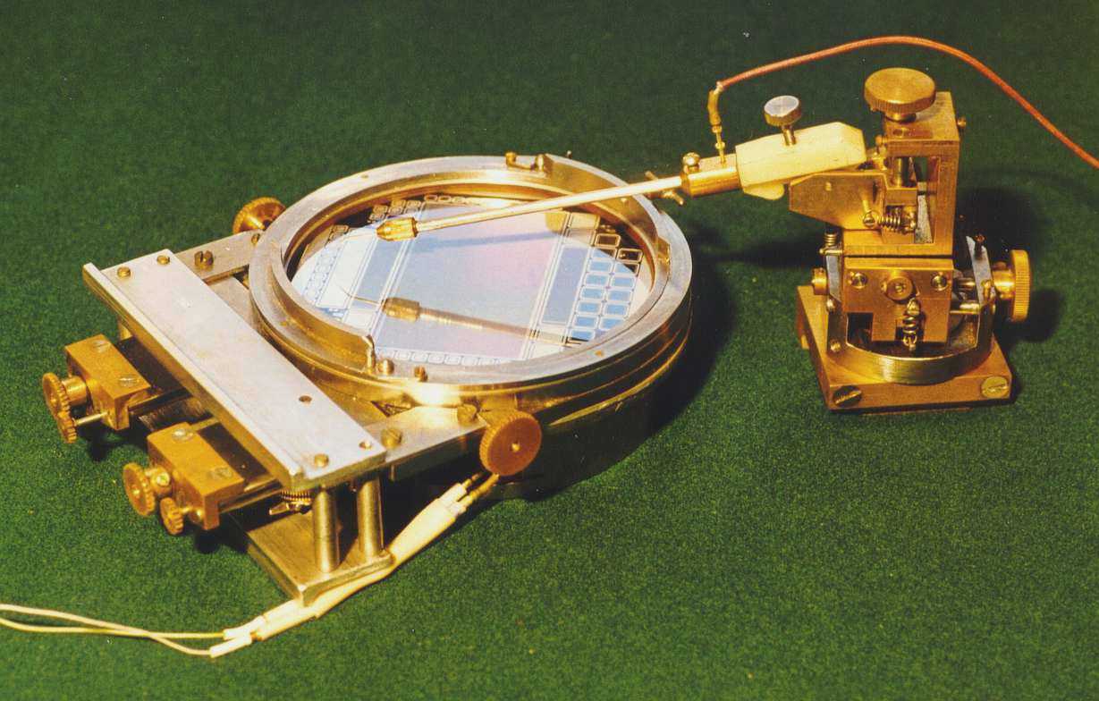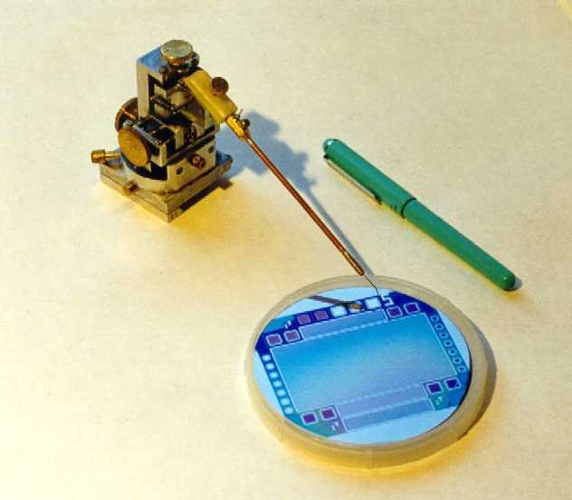 Microprobe and 4 inch silicon wafer with single-sided microstrip detector and test structures (24 KB). |